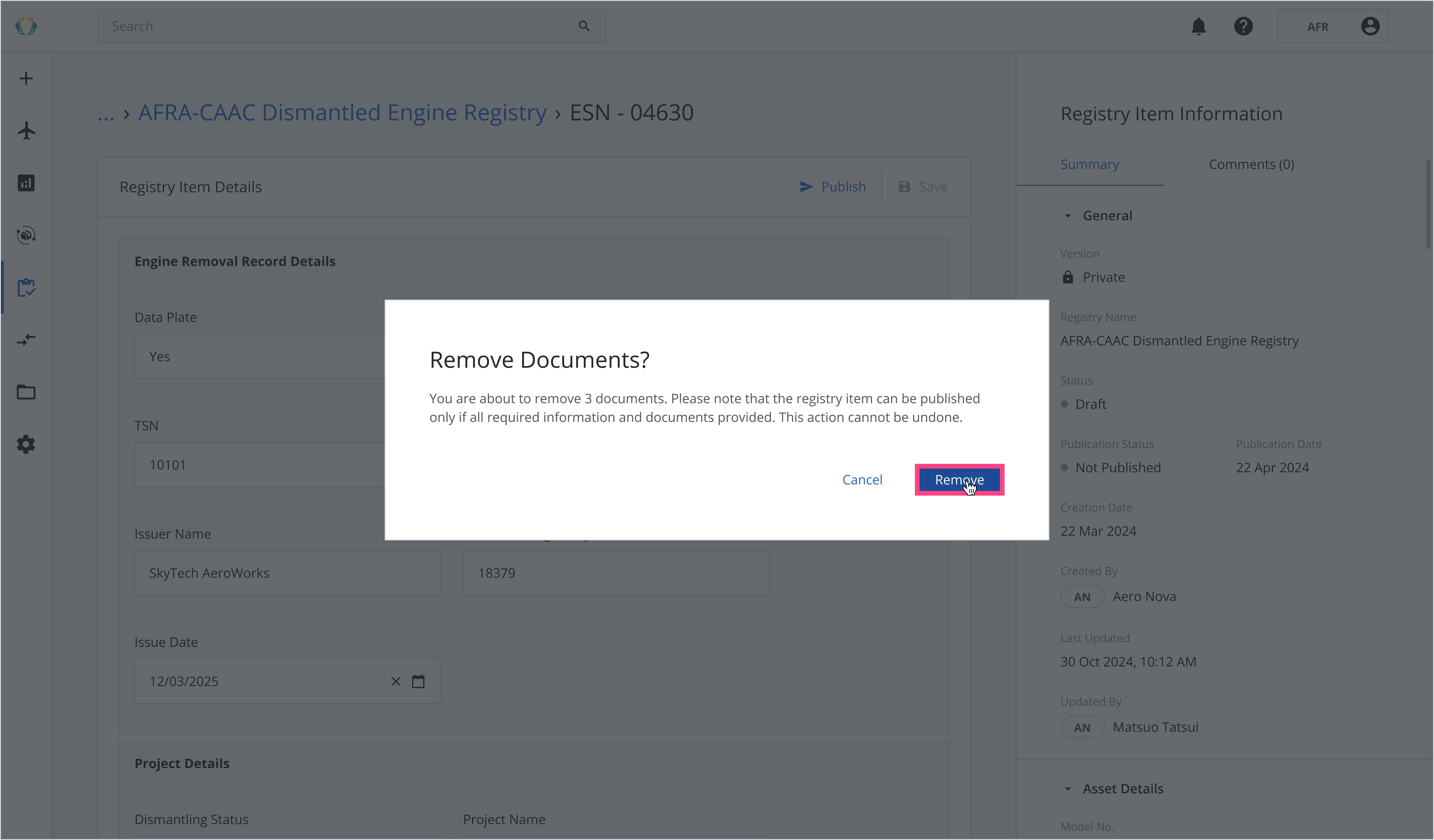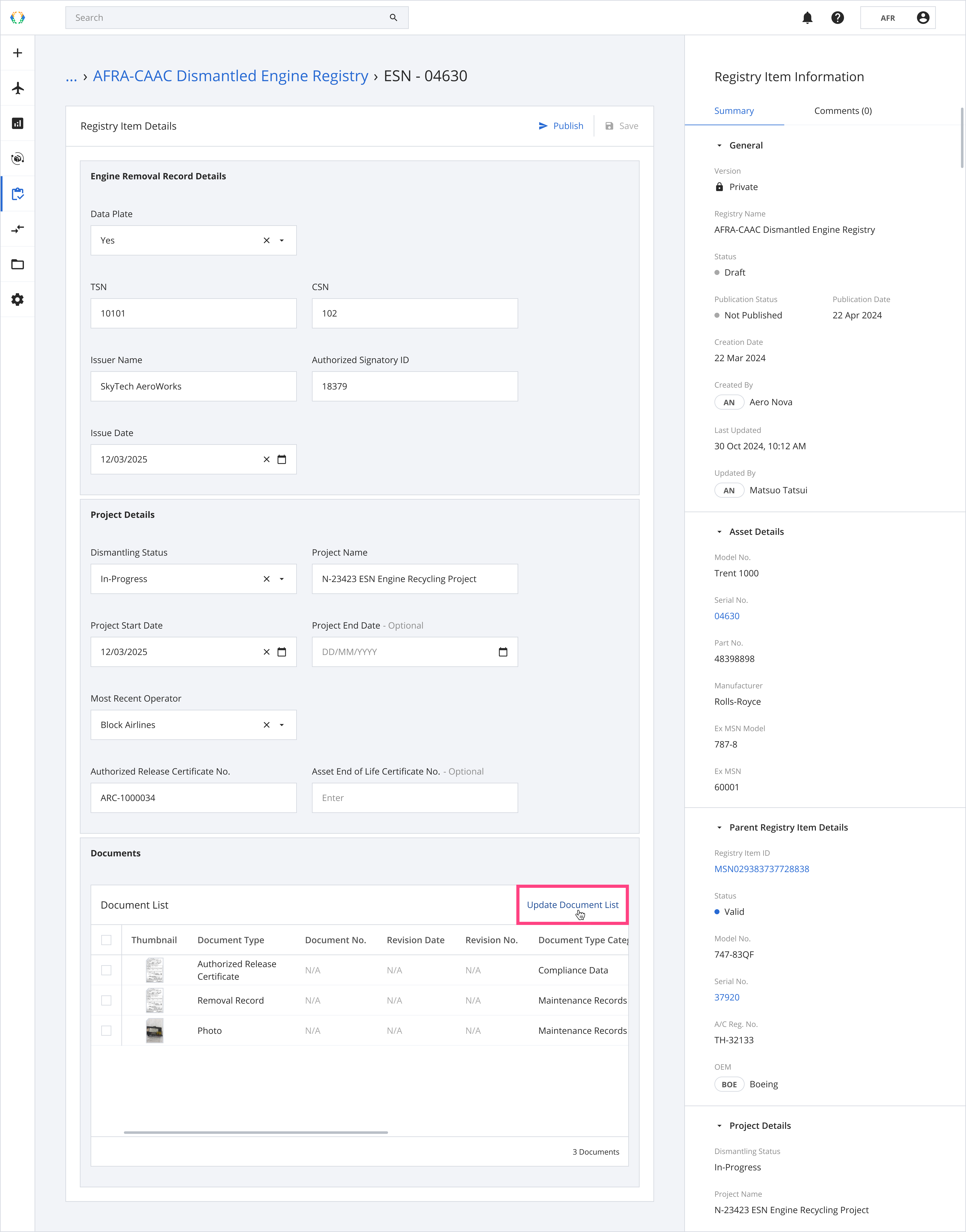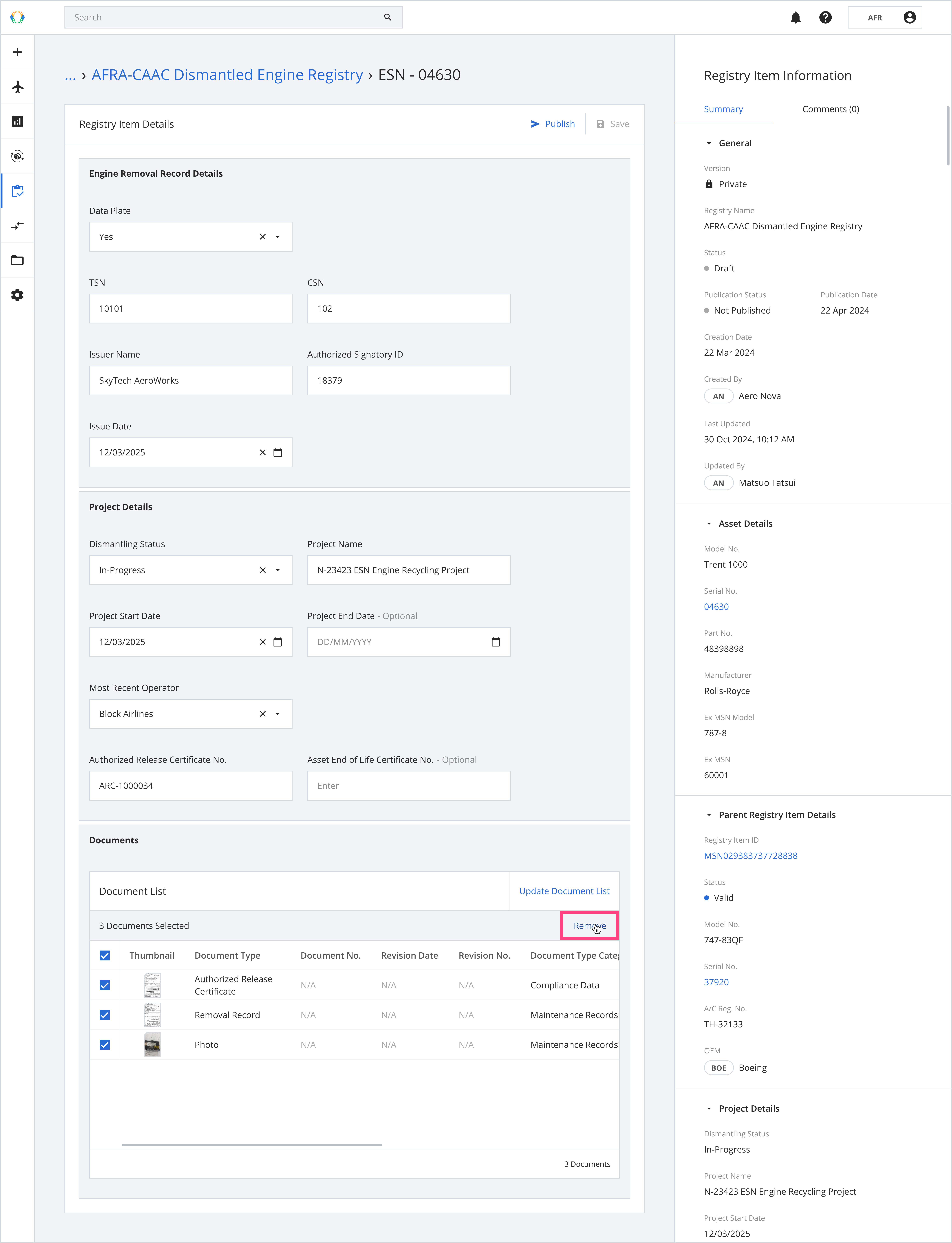 Please note, the required documents for the asset will automatically be attached during the creation of the registry item. In order to select a different document, you can follow these steps.