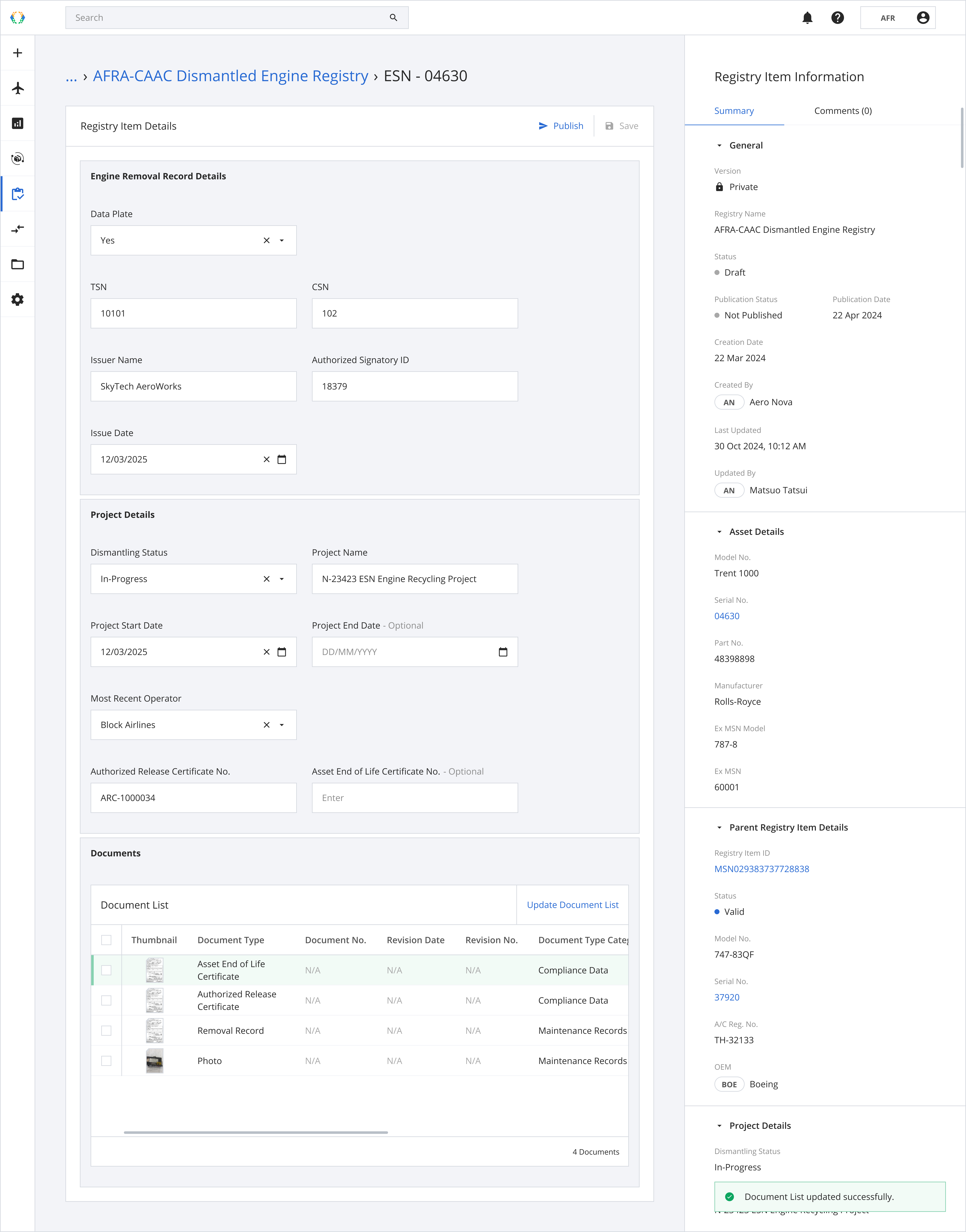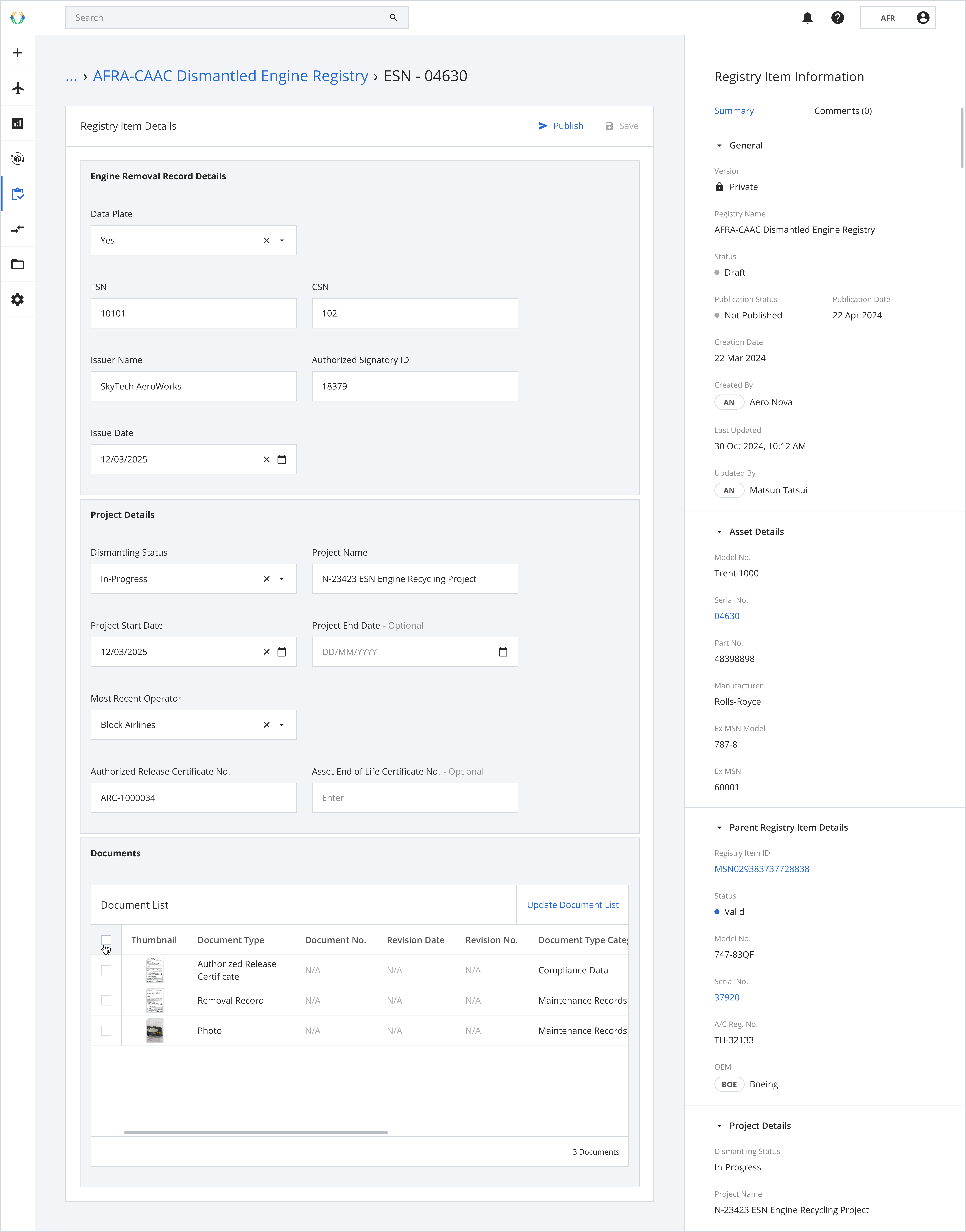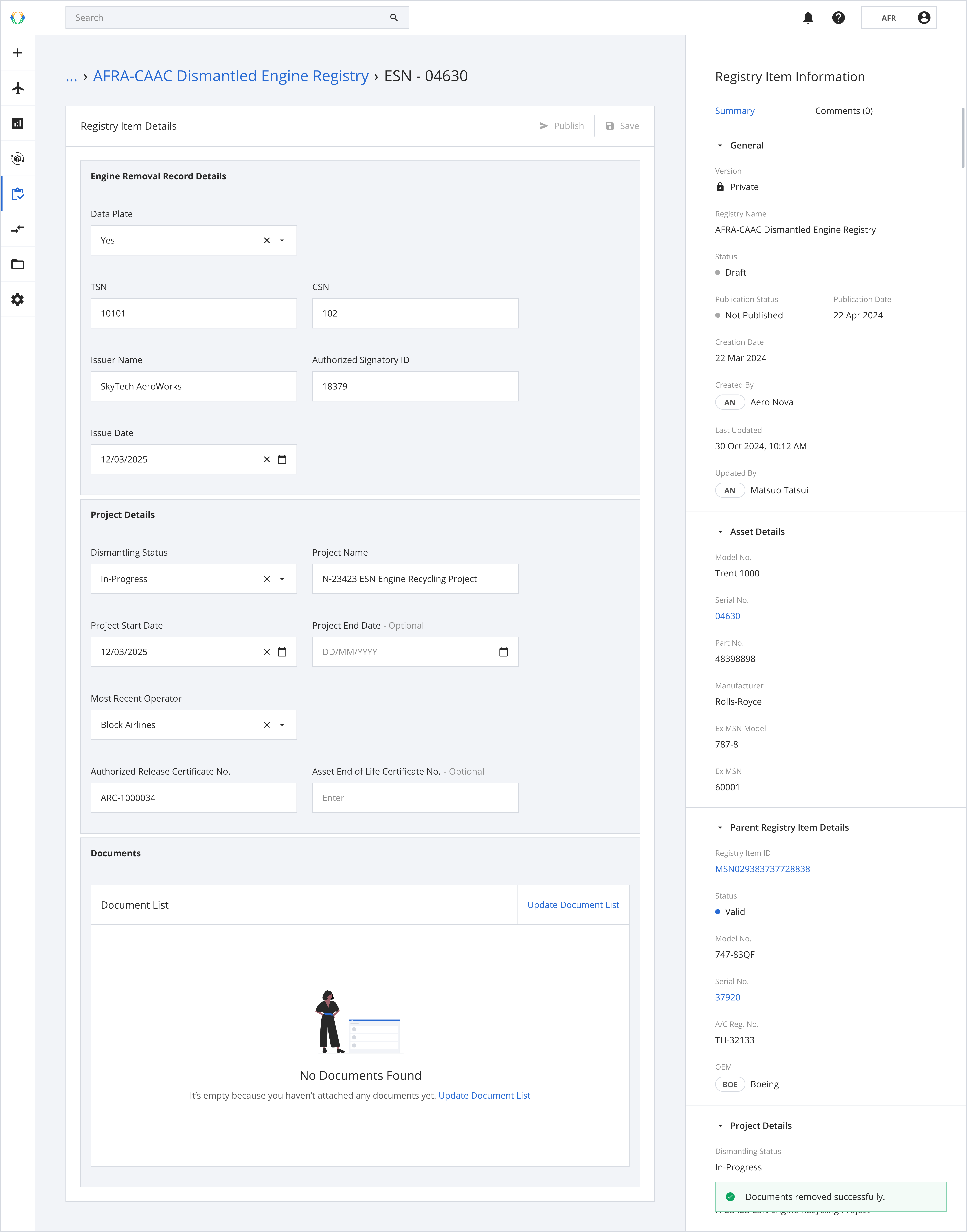 Please note, the required documents for the asset will automatically be attached during the creation of the registry item. In order to select a different document, you can follow these steps.