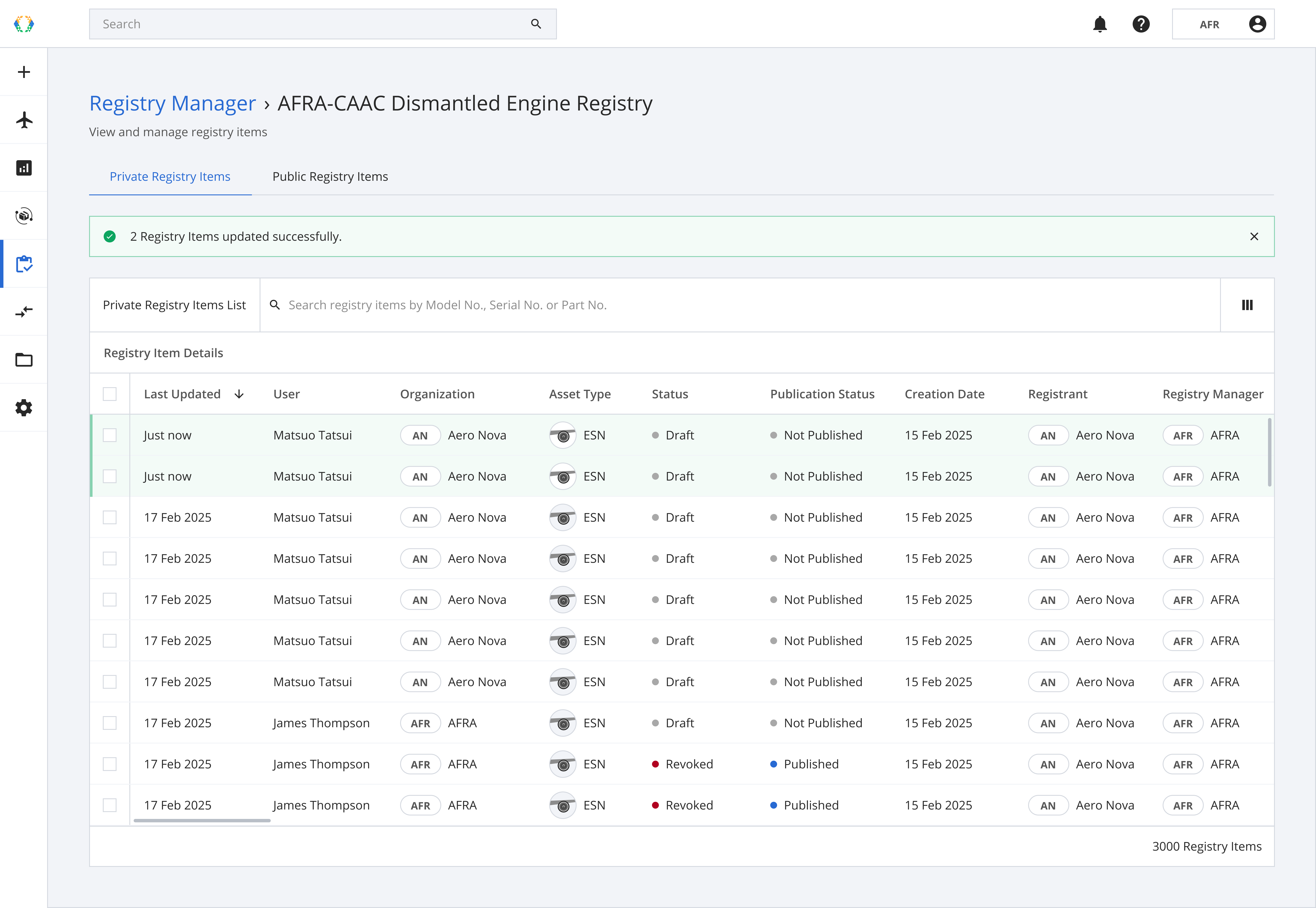 Once the registry item details have been updated successfully, a green banner will appear at the top of the registry items list.