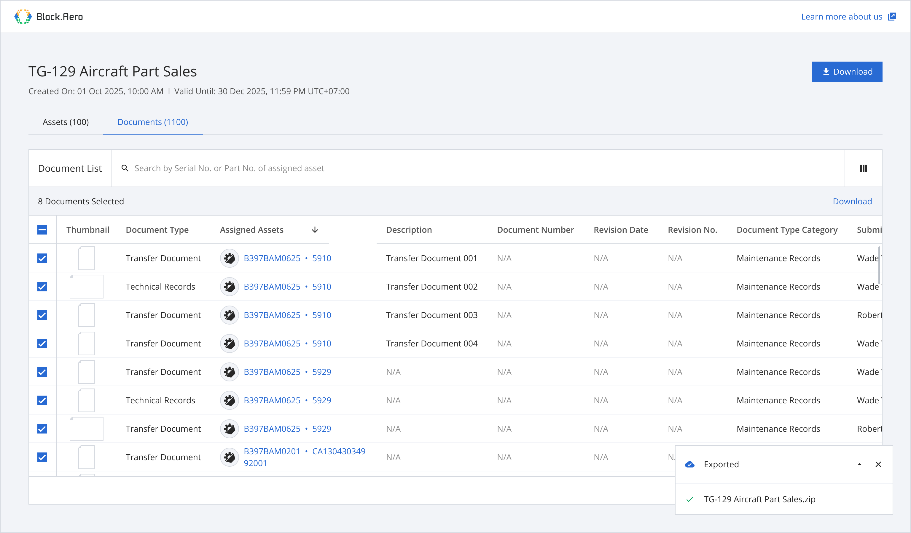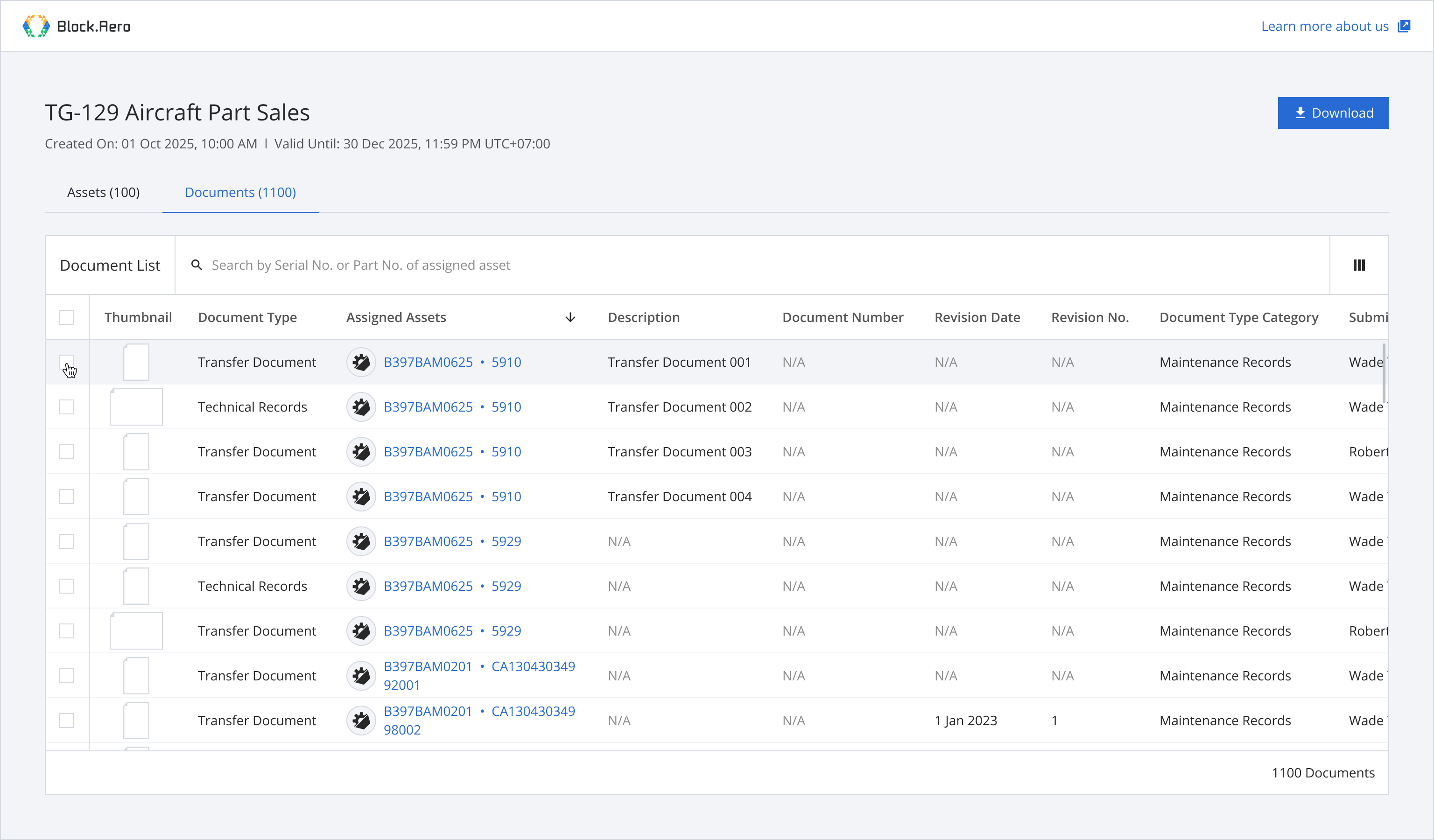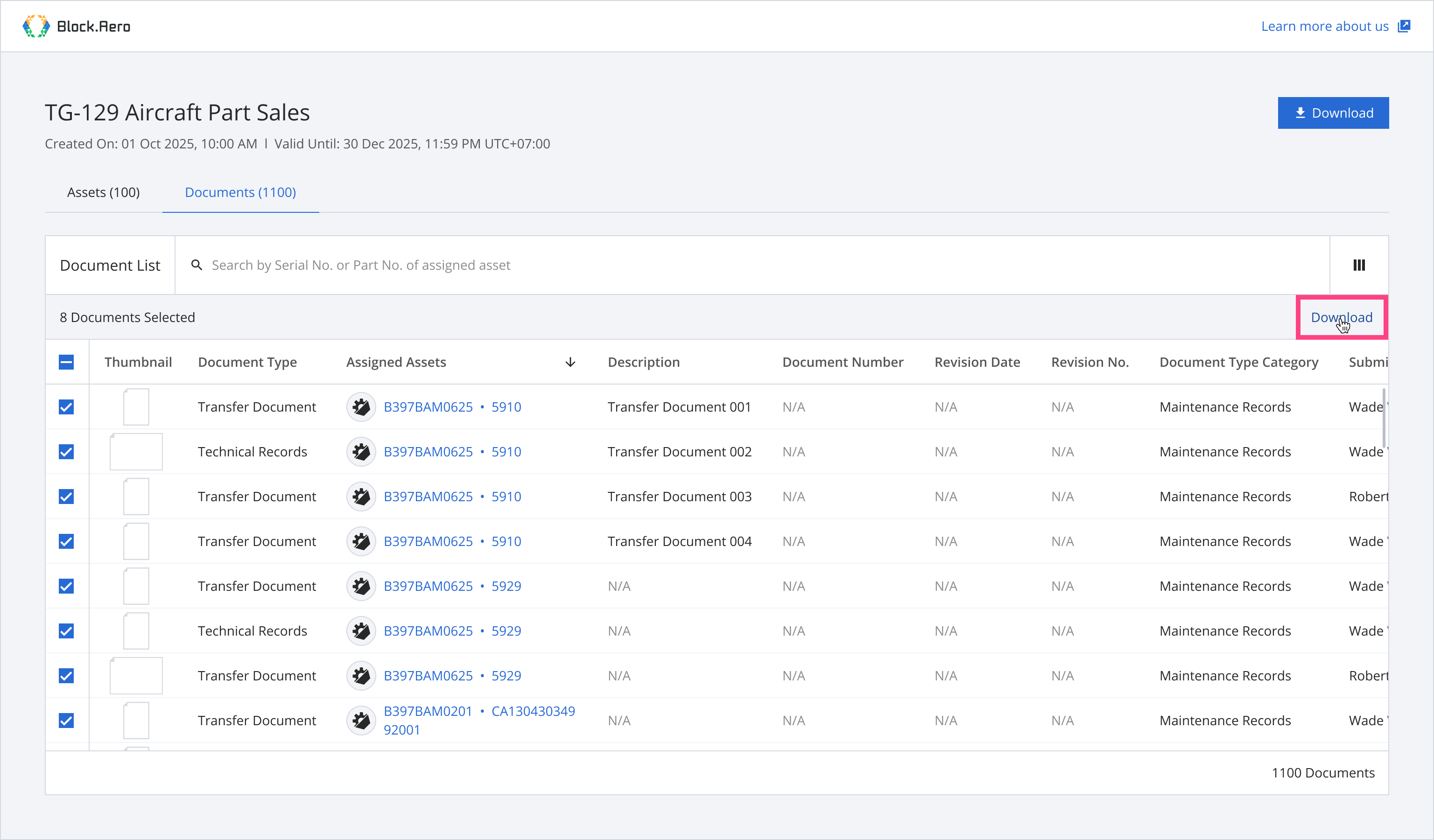 Step 1: From the asset list, select assets you want to download documents.