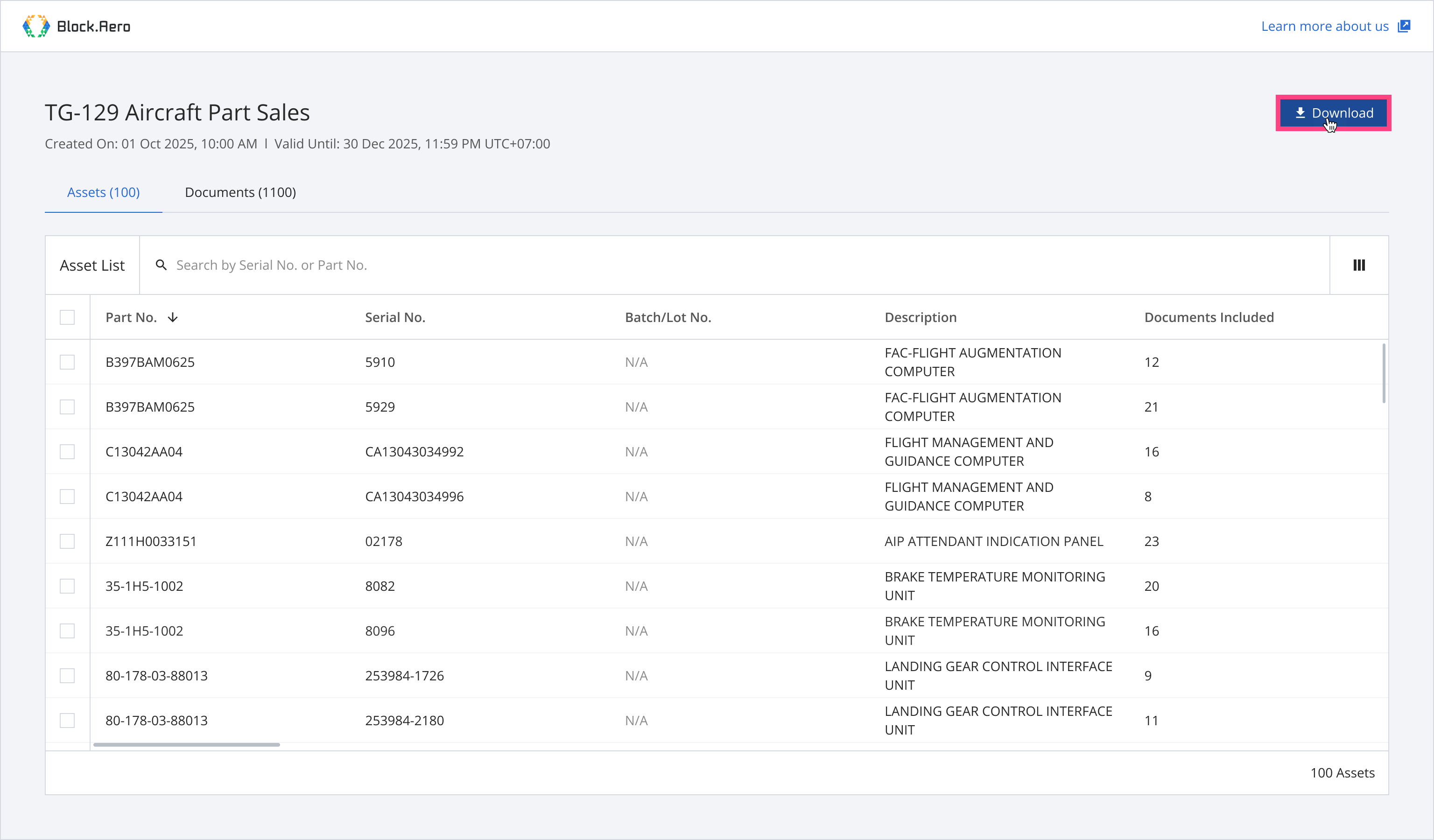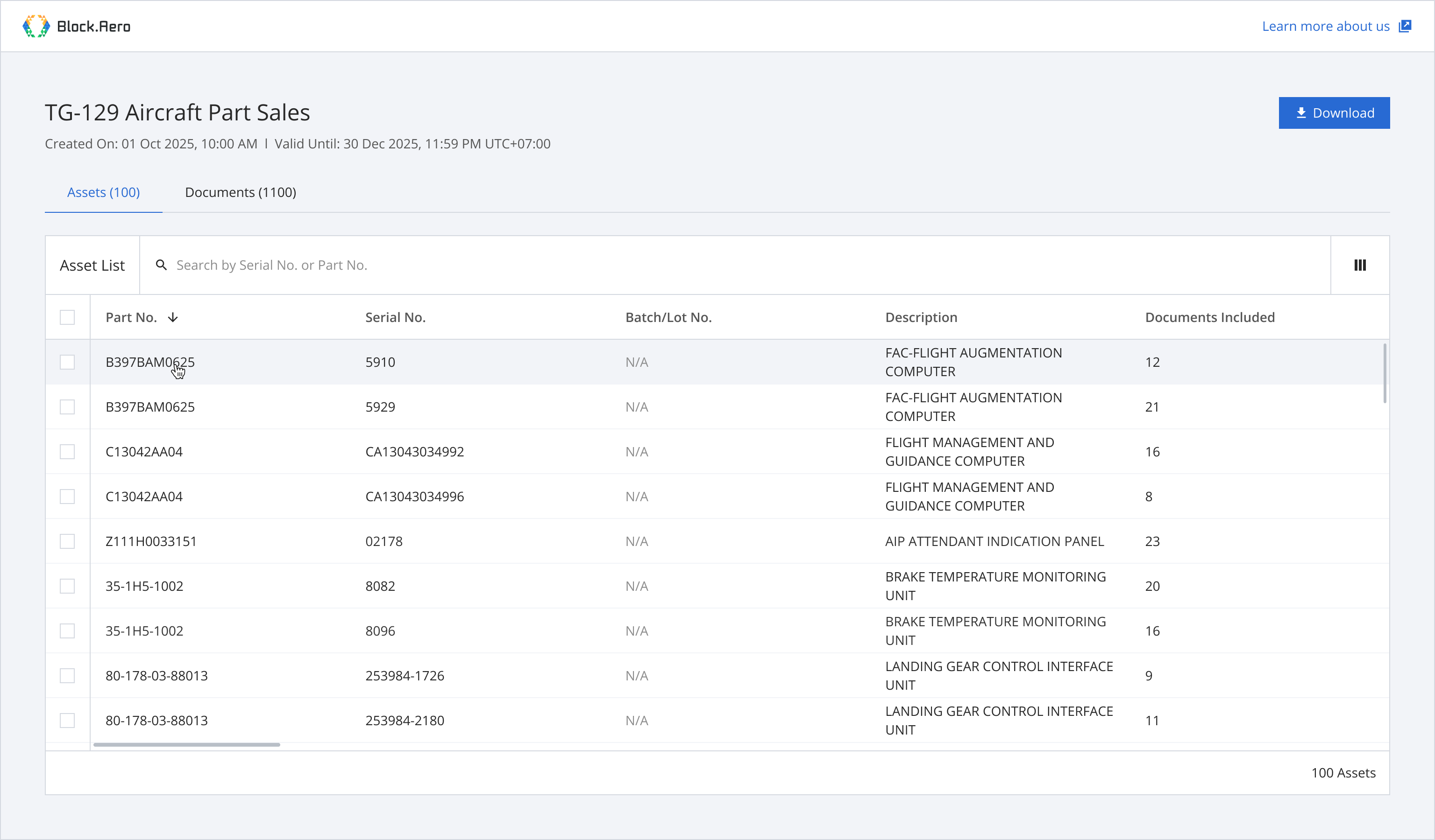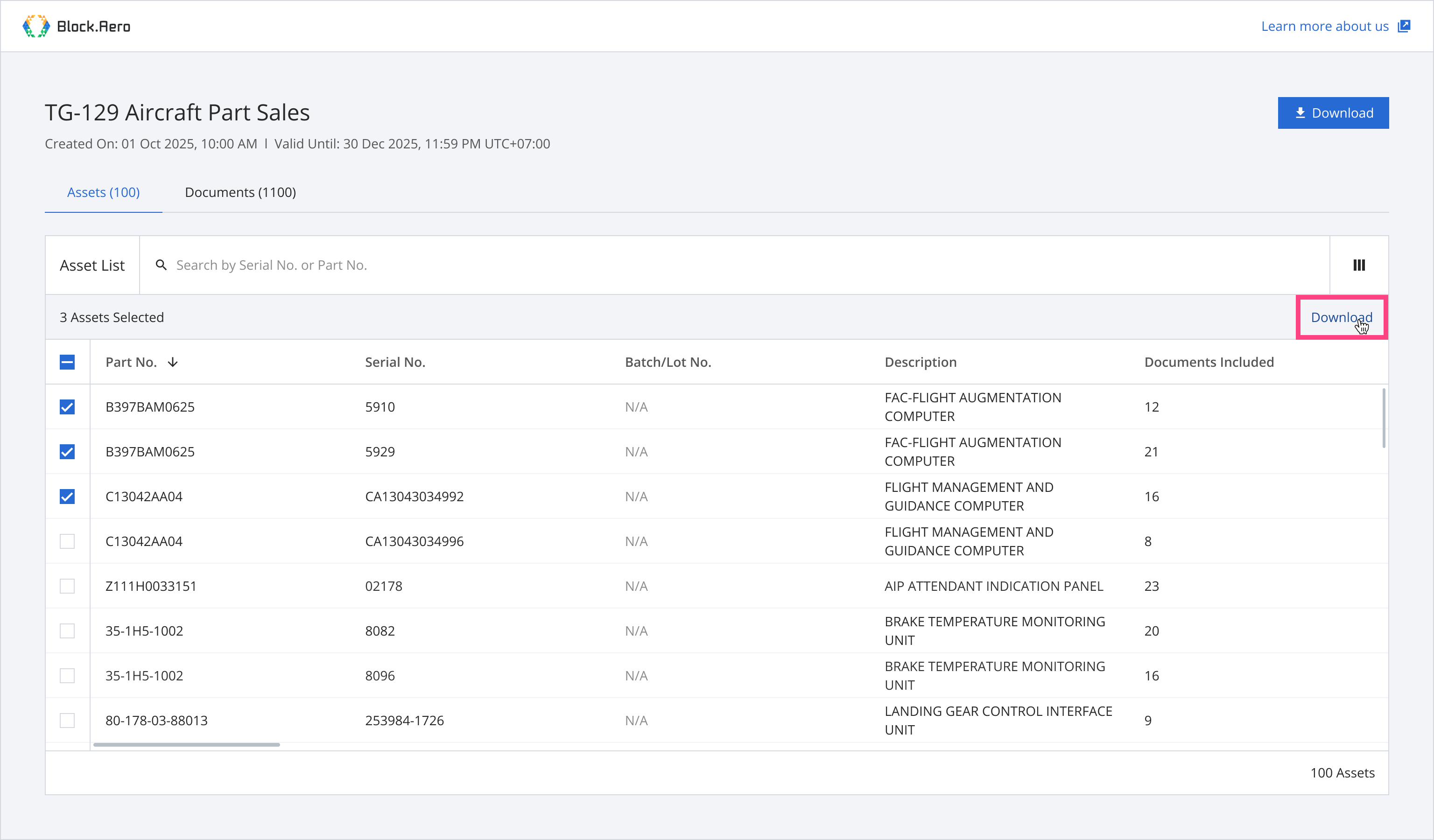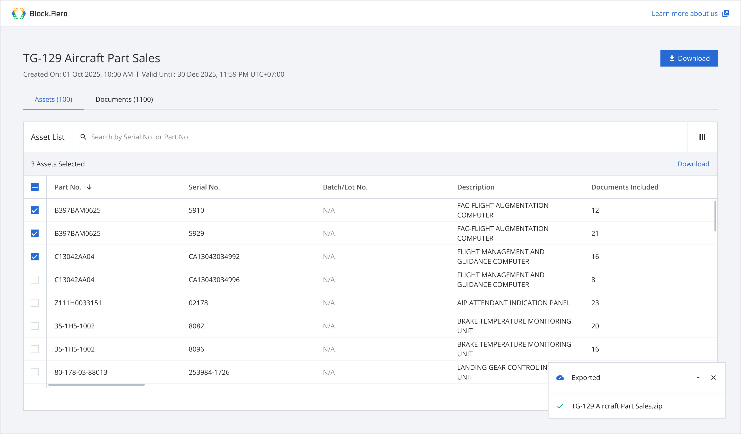 Step 1: From the asset list, select assets you want to download documents.