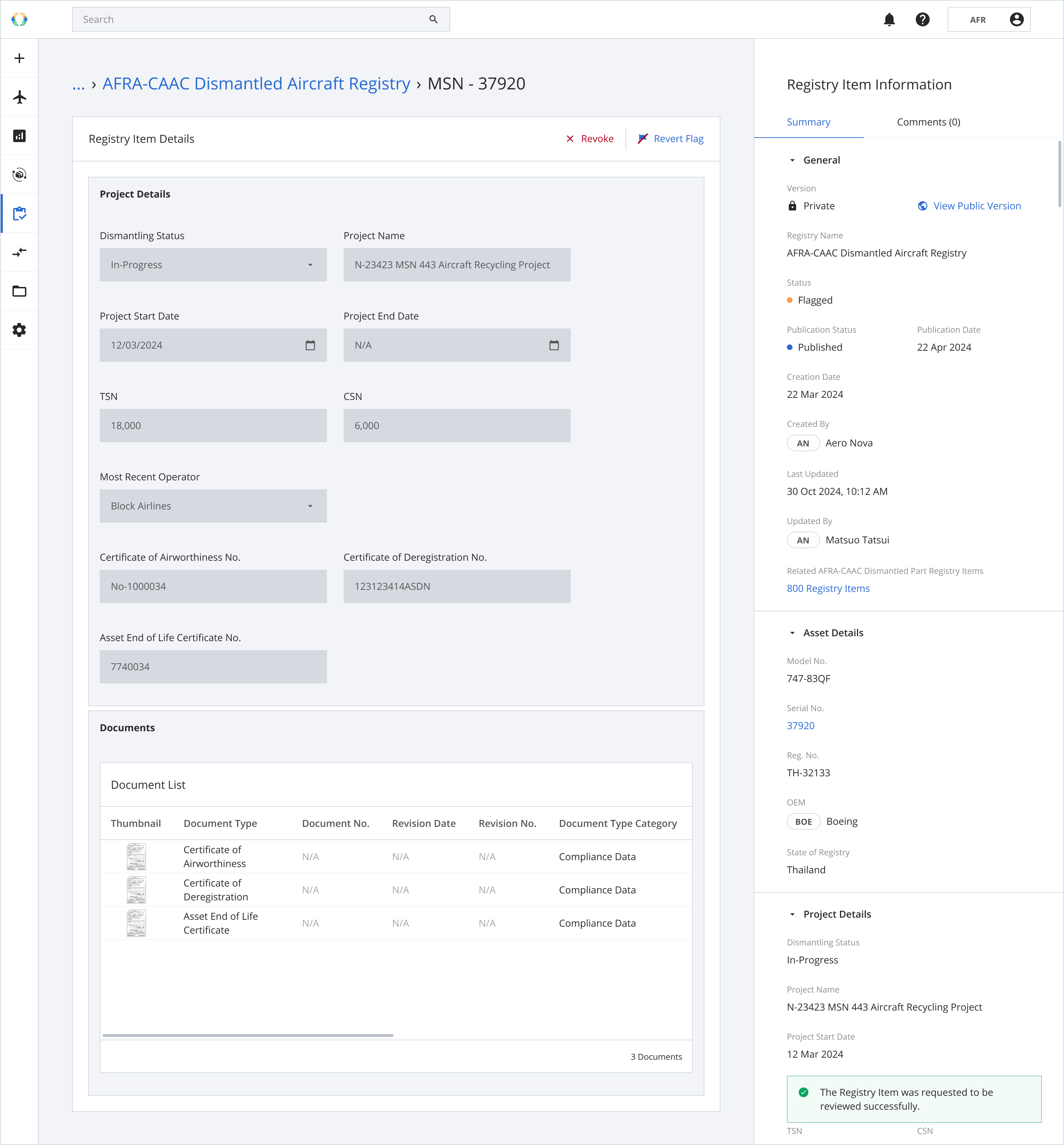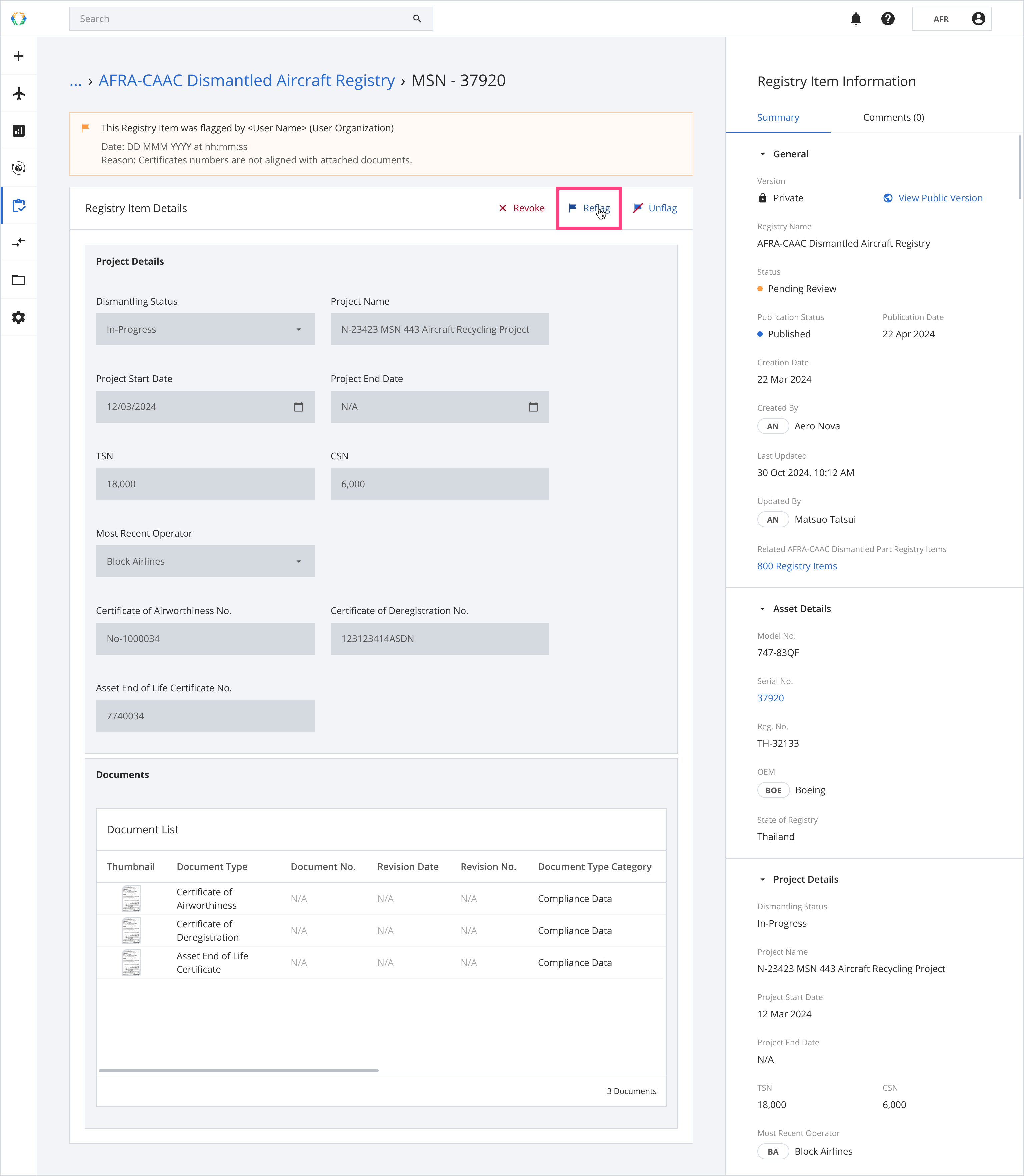 Step 1: From a private registry items list, open a pending review registry item you want to reflag.