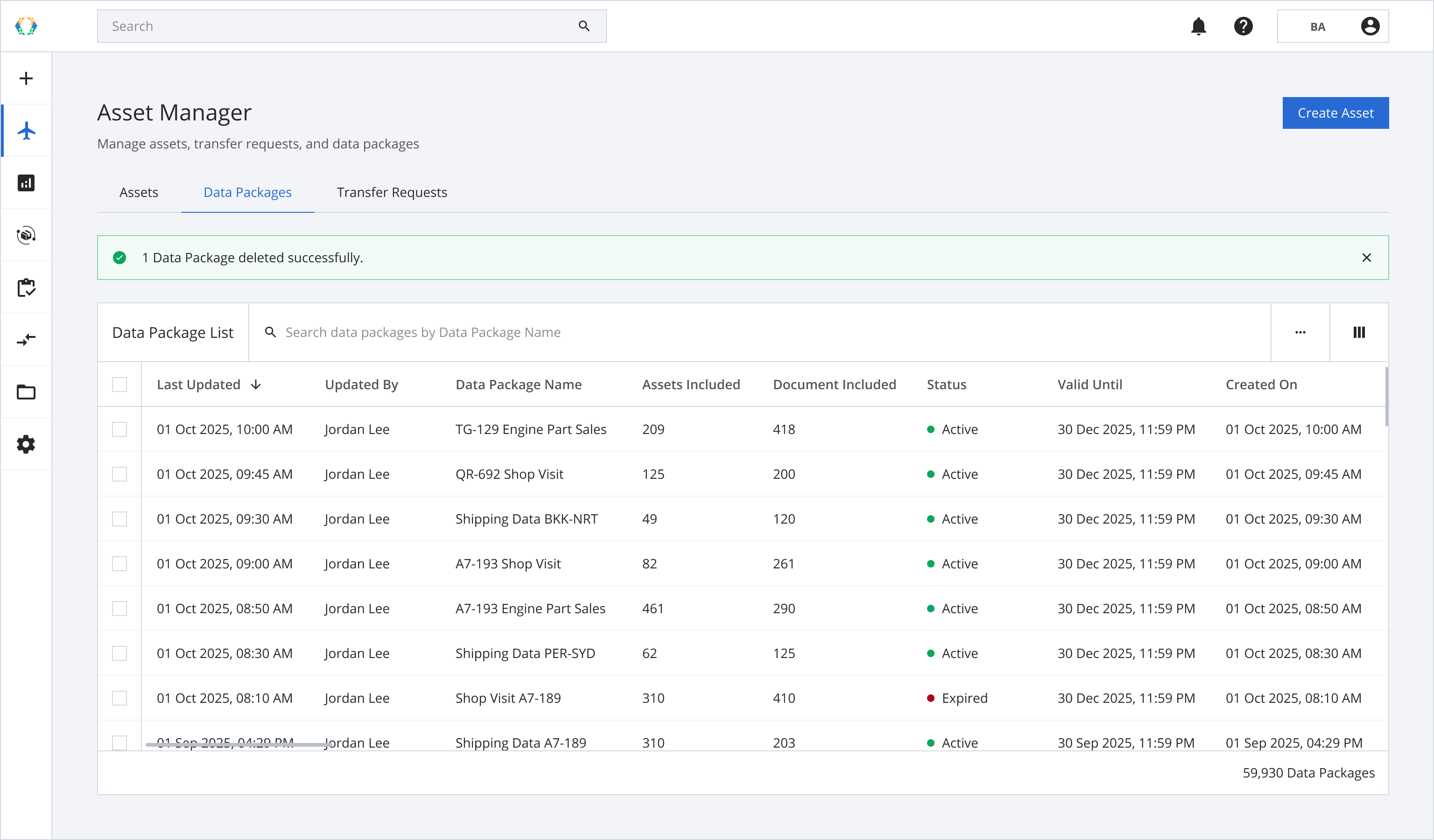 Once the data packages is successfully deleted, a green banner will appear at the top of the data package list.