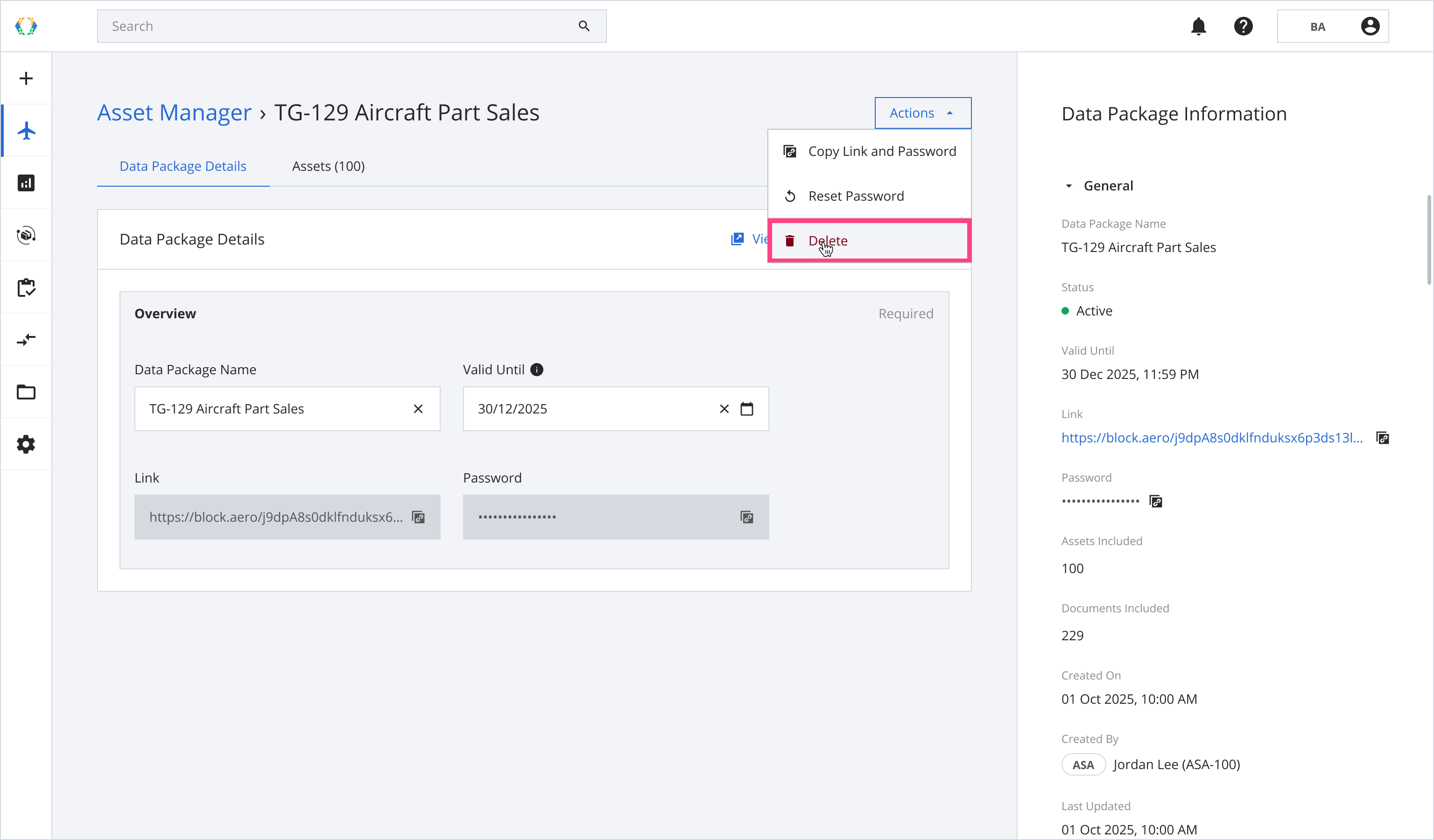 Step 1: From the data package list, open a data package you want to delete.