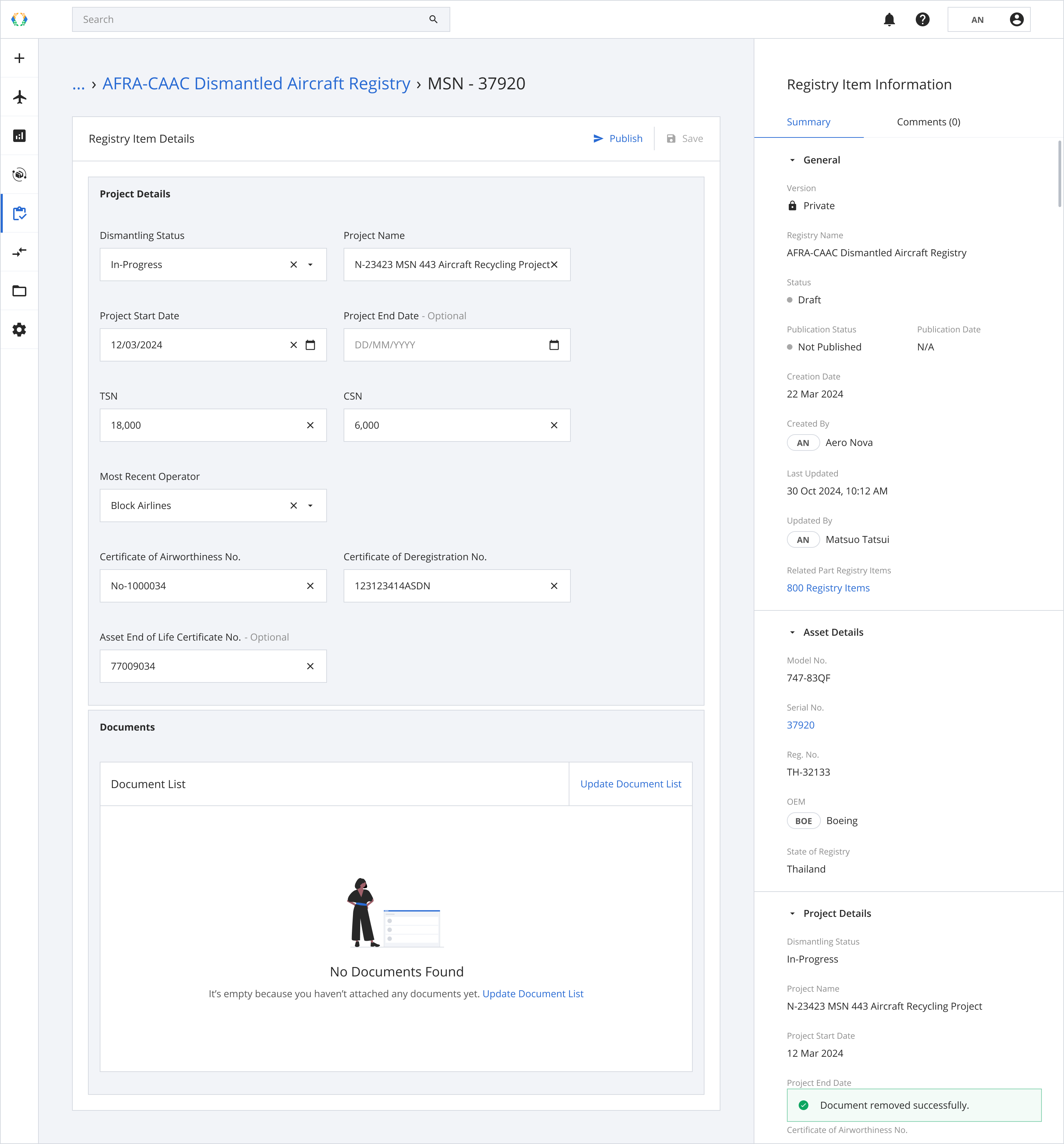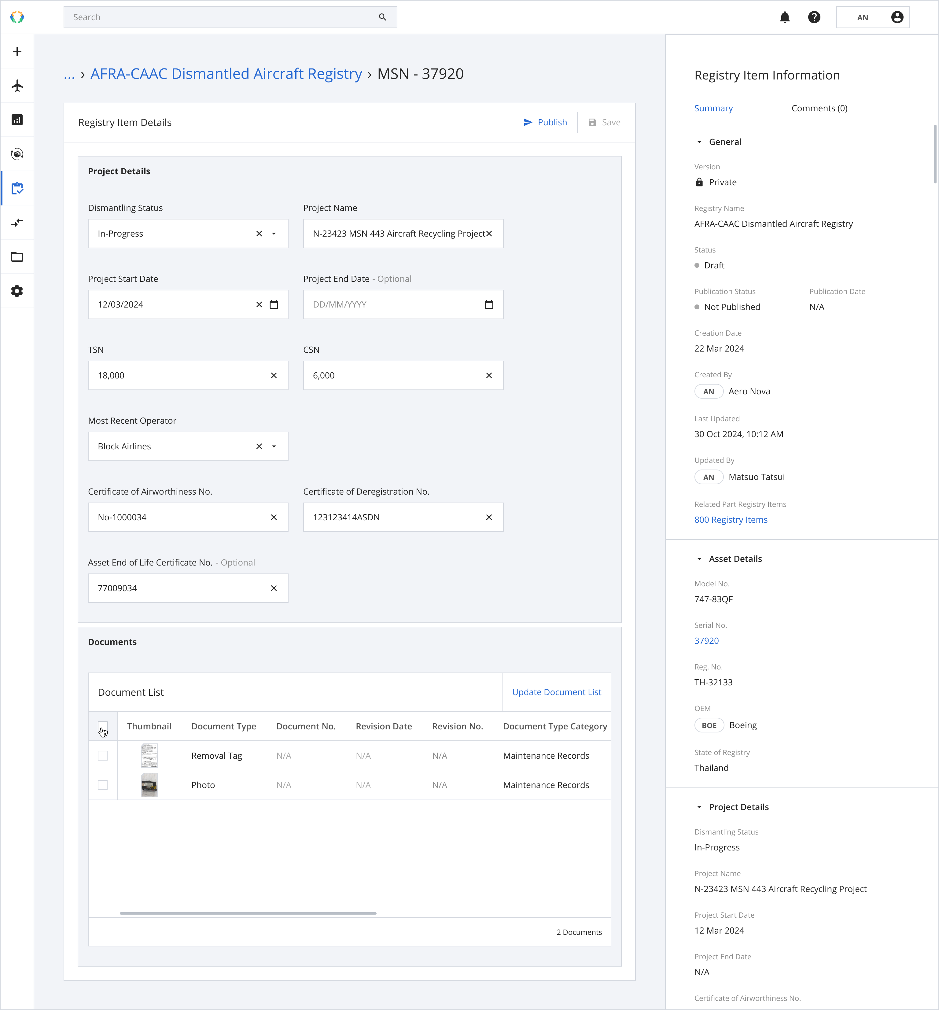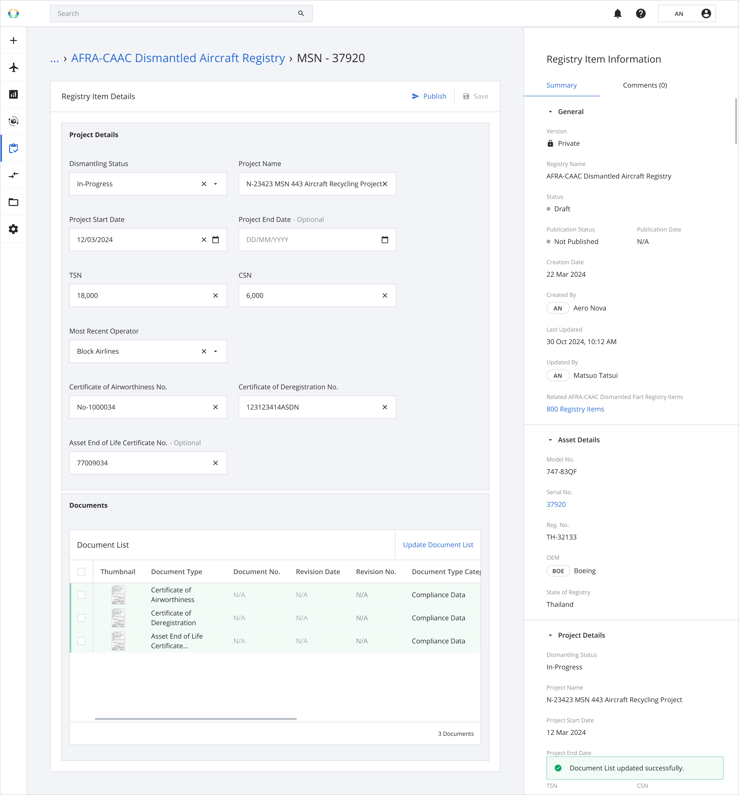 Step 1: From the aircraft registry items list, open the registry item you want to update documents for.